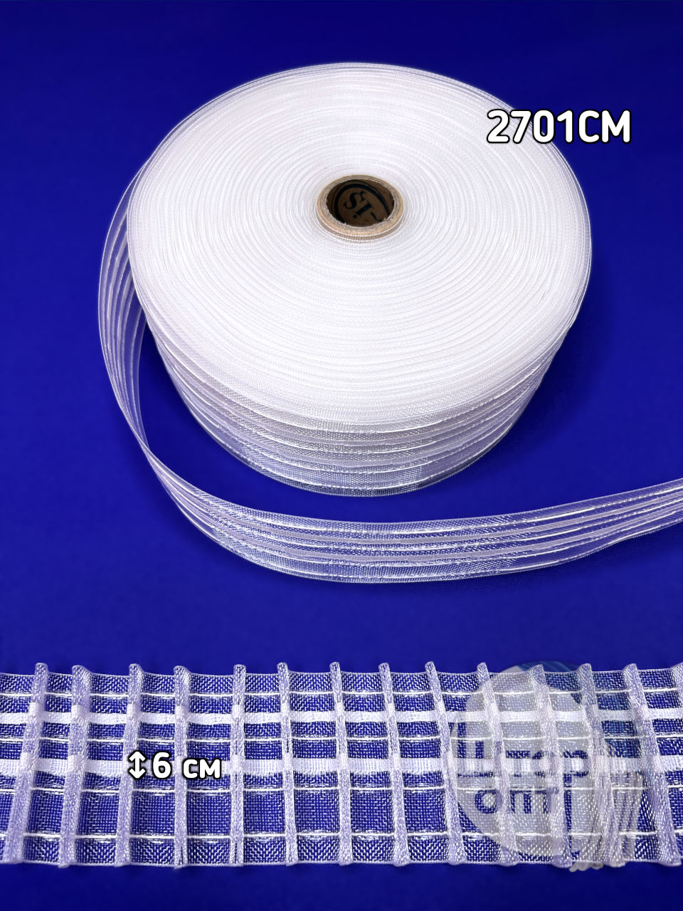 Шторная лента, тип: Карандаш, прозрачная. Коэф.сборки 1:3, марка: OZ-IS, артикул: (2701CM), ширина ленты: 6 см, кол-во рядов кармашков: 2, кол-во стягивающих шнуров: 4, в рулоне: 50м.